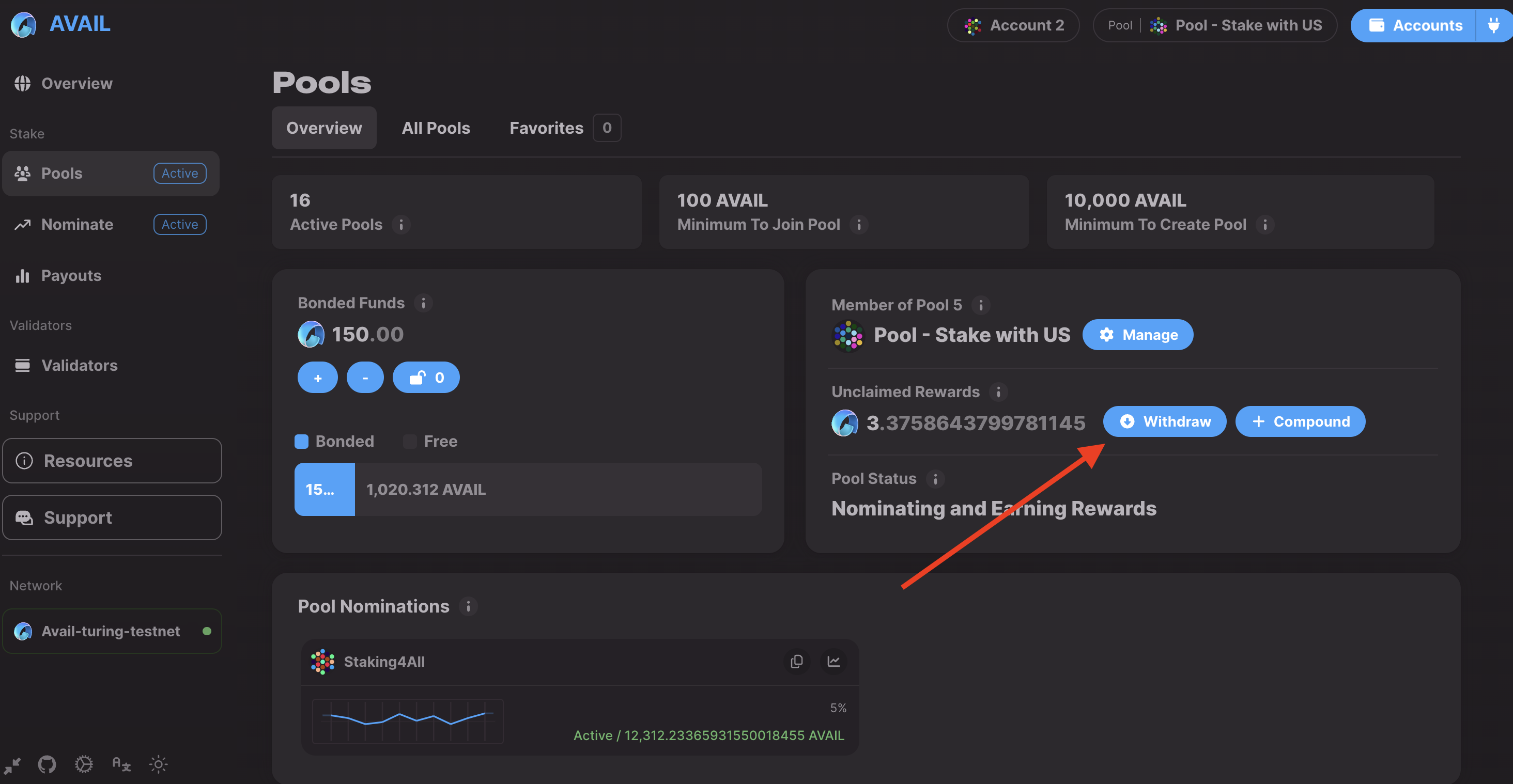 - Members are free to join another pool after withdrawing their funds, subject to Avail’s staking rules and timelines.